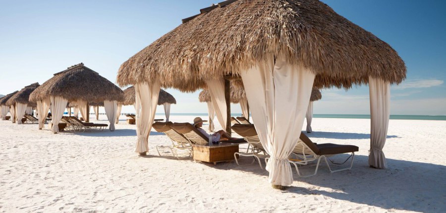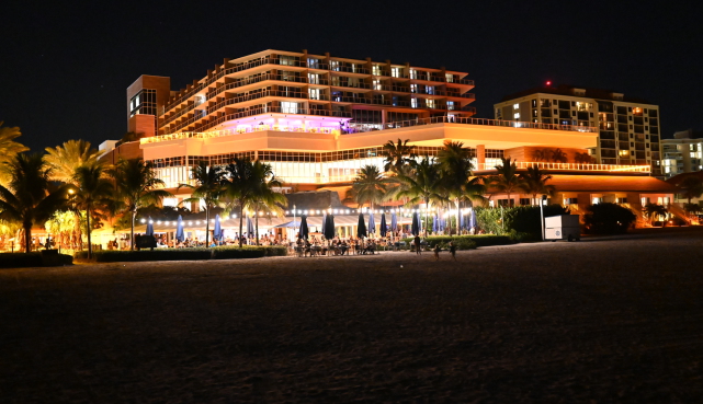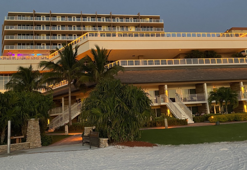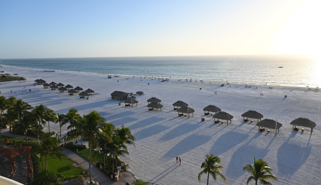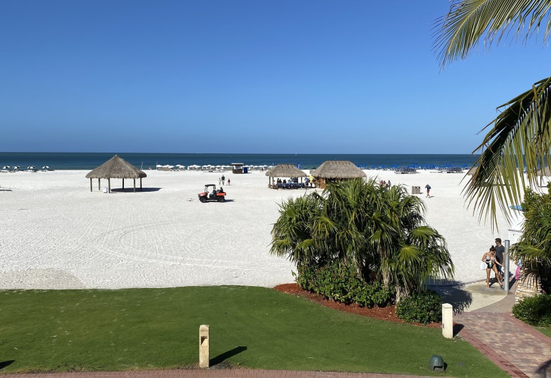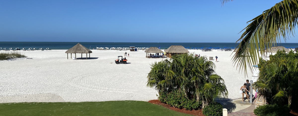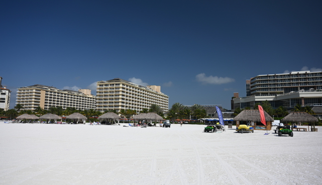 A 300 yard deep white beach and a beatiful resort.